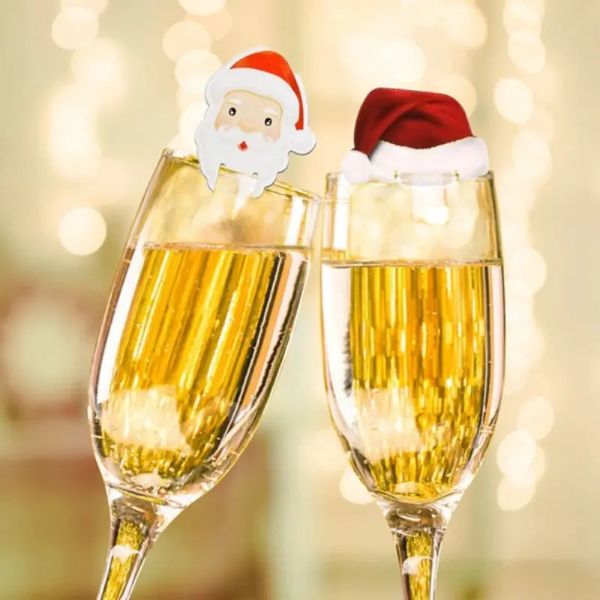 10 gab./komplekts Ziemassvētku stikla glāžu kartītes (5x Ziemassvētku vecīša cepure un 5x briedis)