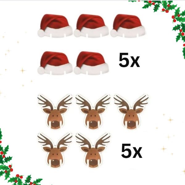Komplektā ietilpst 5x Ziemassvētku vecīša cepures un 5x brieža CUPCARDS.