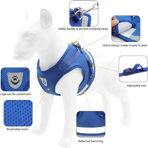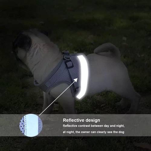 Regulējamajai atstarojošajai mājdzīvnieku jostai un pavadai ir mīksts, ērts un elpojošs tīklveida auduma dizains, kas uzlabo jūsu mājdzīvnieka nēsāšanas pieredzi.