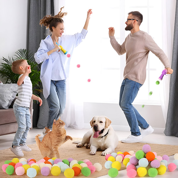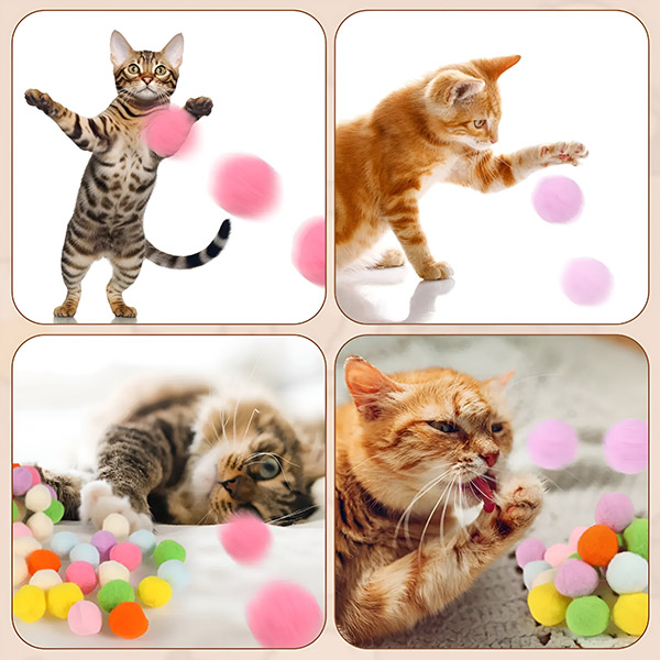 Pateicoties košām krāsām, šīs plīša bumbas piesaista kaķa uzmanību, padarot rotaļu laiku aizraujošāku. Vērojiet, kā jūsu kaķis pilnībā iegrimst krāsainu prieku pasaulē, kas viņu aizrauj stundām ilgi.