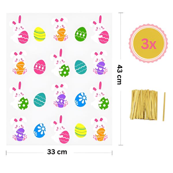 🐰 3 maisiņu komplekts ar zaķu un olu rakstu svētku kārumiem