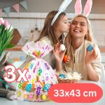 Maisiņa izmērs: 43 x 33 cm Sasienamās auklas garums: 8 cm Materiāls: Materiāls: augstas kvalitātes OPP plastmasa Lietošana: Lieldienu dāvanas, svinību dāvanas, konfekšu uzglabāšana, dekorācijas.