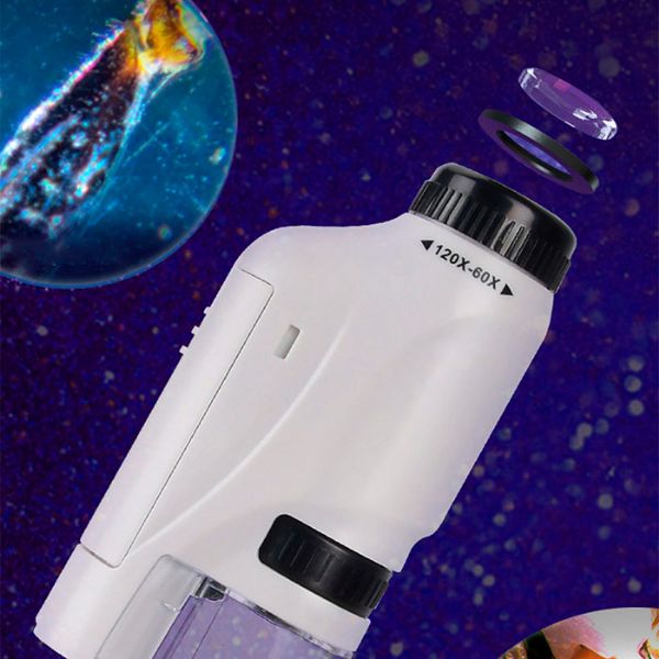 Pārnēsājamais mikroskops ir fantastisks risinājums mikrosfēras izpētei, un tā palielinājums ir no 60x līdz 120x!