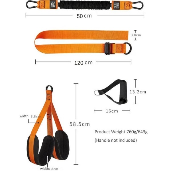 Aprīkots ar stipru tērauda sprādzi un ar audumu pārklātām lateksa caurulēm, kas nodrošina lielāku drošību un ilgmūžību treniņu laikā.