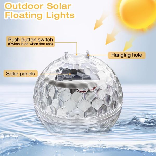 Saules LED baseina bumbas – ļaujiet tām peldēt uz ūdens vai piekariet tās jebkurā vietā, lai pārvērstu jūsu āra un iekštelpu telpas par dzīvīgām, maģiskām teritorijām. Šī daudzpusīgā gaisma, kas lieliski piemērota dārziem, baseiniem, terasēm un citiem objektiem, piedāvā satriecošu, automātiski mainīgu krāsu apgaismojumu, kas piešķir eleganci un jautrību jebkurā vietā, kur to novietojat.