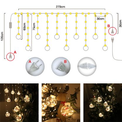 Gaismas ir uzvilktas uz stieples kā aizkars. Kad tās izkārtojat, jūs radīsiet īstu Ziemassvētku pasaku.