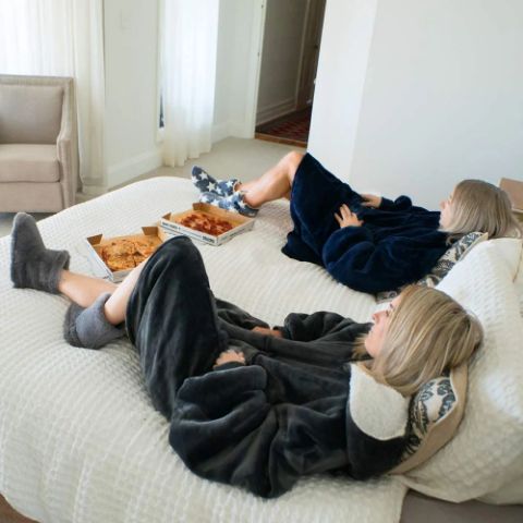 Līdz ceļgaliem garais HOODZIE, jaka ar kapuci un sega vienā, nodrošinās patīkamu siltumu, skatoties TV, lasot vai atpūšoties pēcpusdienā.